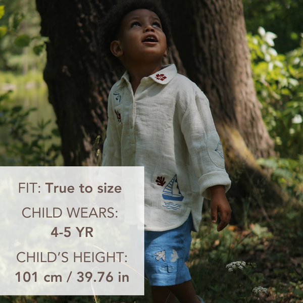 These soft cotton shorts in vibrant cobalt blue are made for sun-soaked days and salty breezes. Featuring a relaxed fit and an elasticated waistband for comfort, they’re finished with delicate hand-embroidered sea birds that bring a playful, seaside spirit to every outfit. Perfect for everyday wear, beach strolls, or holiday adventures.