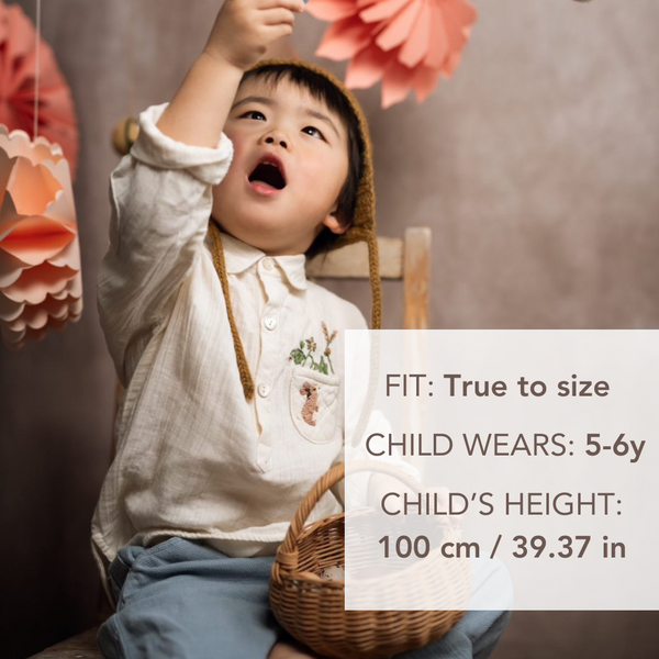 Introducing our charming boys' shirt, a perfect blend of playfulness and sophistication. Featuring a whimsical bunny motif on the front pocket, this shirt adds a touch of character to any ensemble. The practical yet stylish addition of neck buttons ensures easy dressing, making it a versatile and handsome choice for your little one's wardrobe.