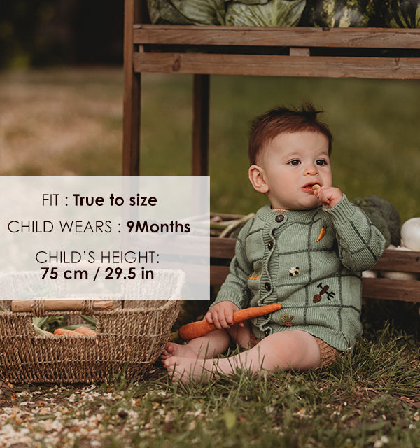 It is a truly special piece with its embroidered elements of fresh vegetables and farm details. Each cardigan is meticulously handcrafted, with every stitch telling a story of the fields and farms that inspired it.