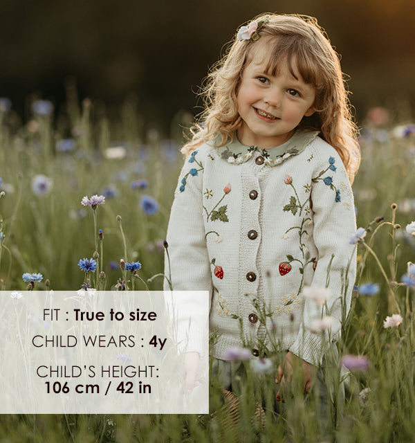 A super cute and spacious knitted cardigan with exquisite hand embroidery, knitted from soft organic vegan cotton yarn.