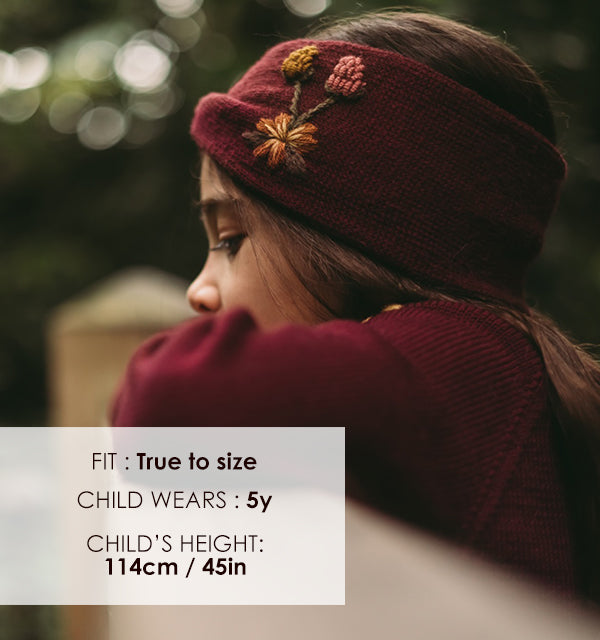 This hairband is hand knitted from our untreated merino wool and hand-embroidered by our talented artisan ladies. Available in two beautiful colorways, each shade serves as the perfect backdrop for the sweet blackberries and floral embroideries. It is very comfortable and has the perfect fit with a nice stretch.