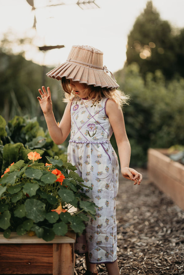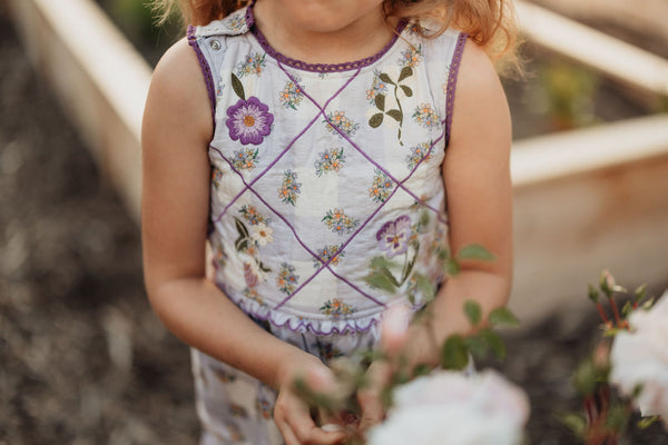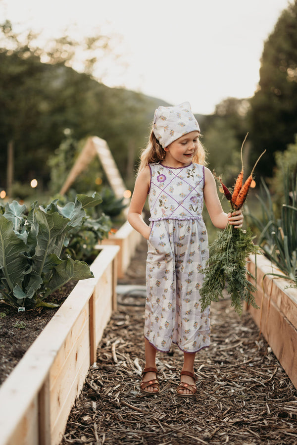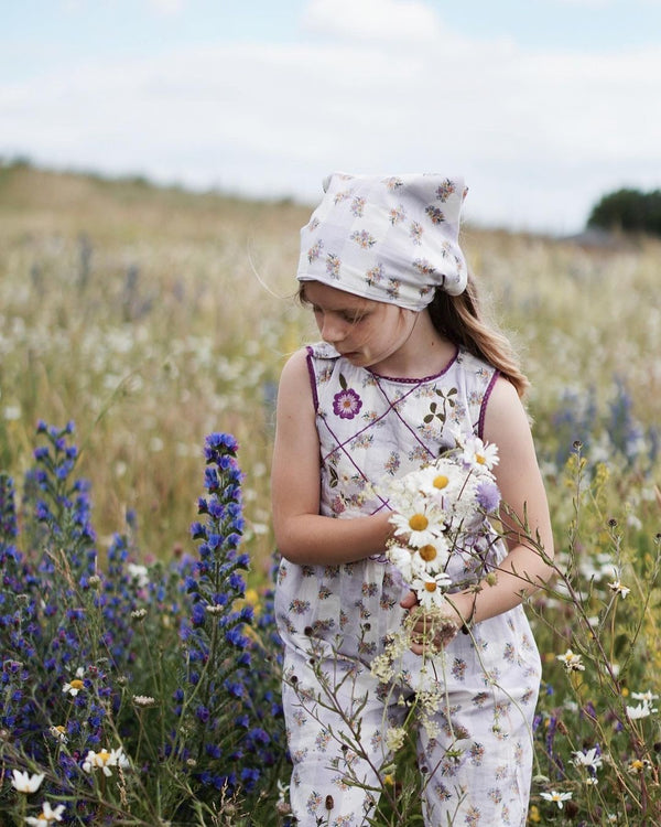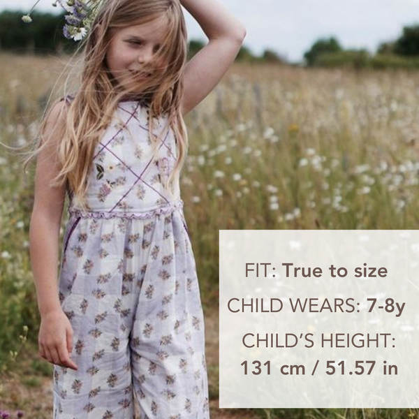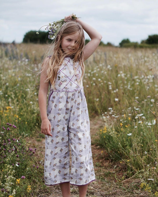 Summer dreams are made of this! The perfect lightweight jumpsuit sewn from beautiful cotton. The jumpsuit has a quilt bib-front with gorgeous embroideries and wide 3/4 length legs.