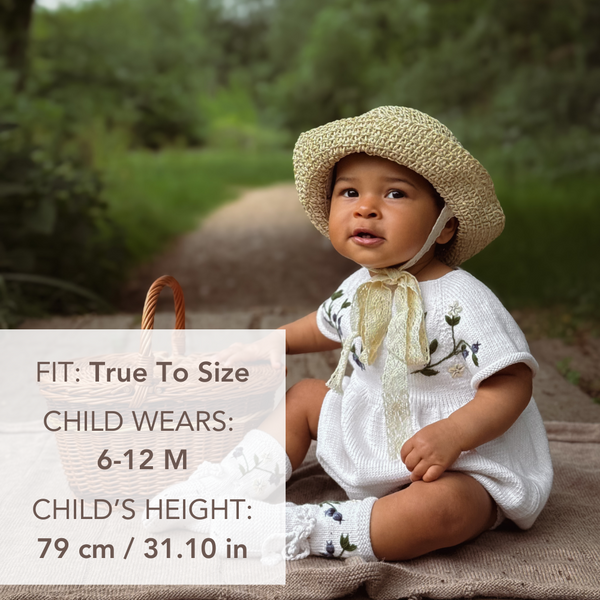 Our Blueberries romper is a little work of art — featuring hand-embroidered blueberry details we spent a full year perfecting. Crafted from soft, breathable cotton, it’s gentle on delicate skin and designed for easy movement and play. With every stitch, it brings the joy of sun-filled days and sweet summer moments to life.