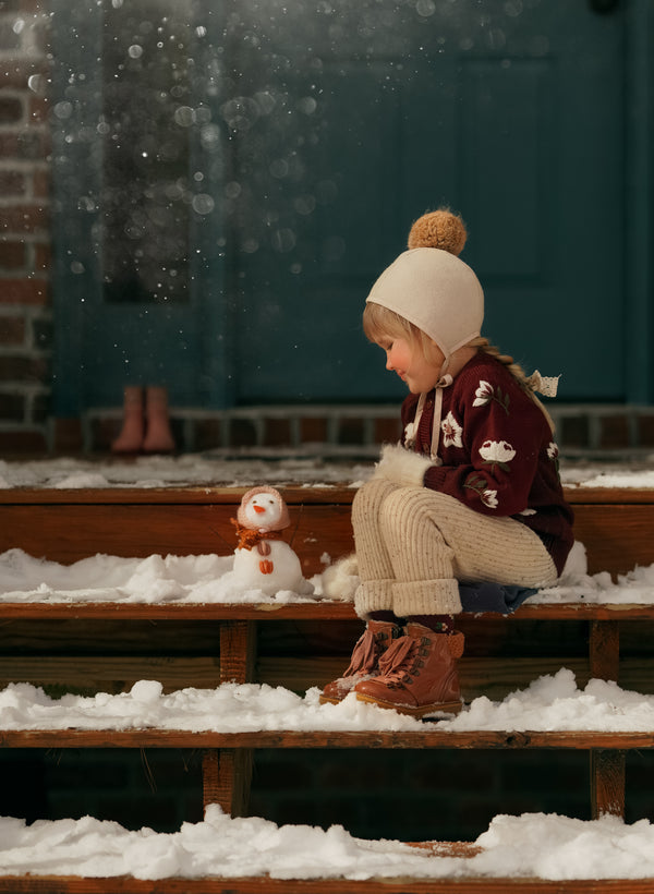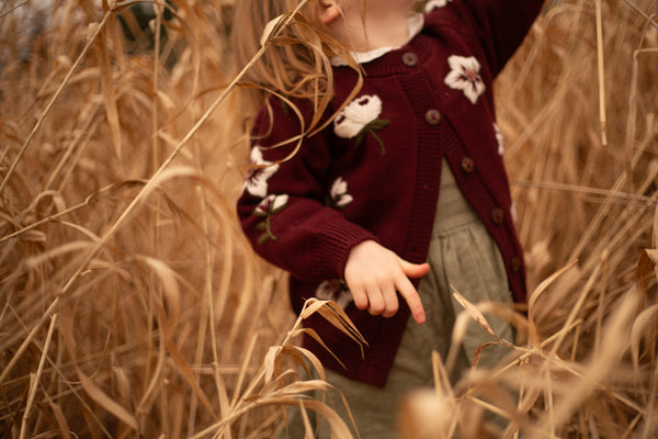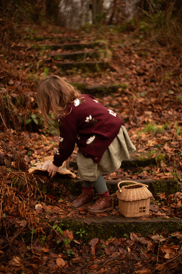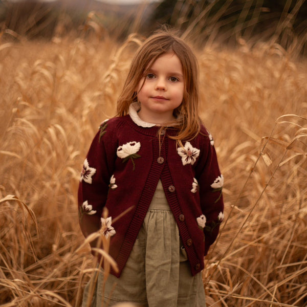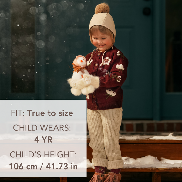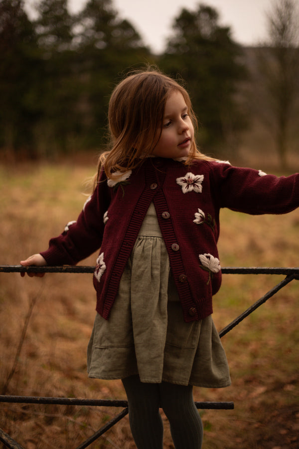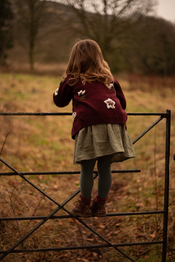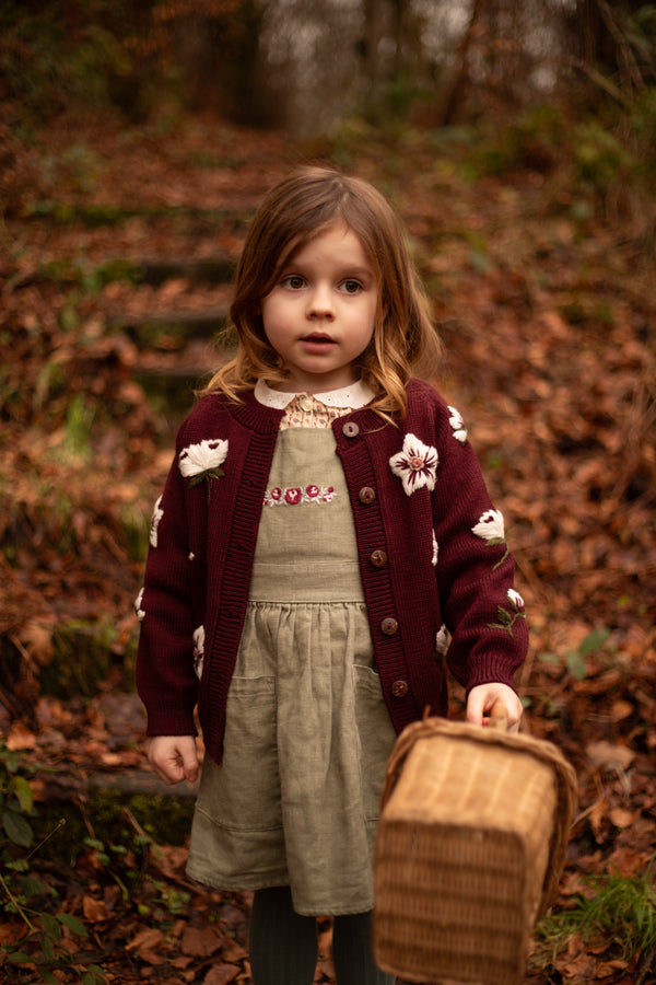 A stunning knitted cardigan adorned with hand-embroidered hellebores, bringing nature’s beauty to your little one’s wardrobe. This elegant piece is both cozy and effortlessly stylish for any occasion. Knitted from soft 100% merino wool. A truly unique piece!